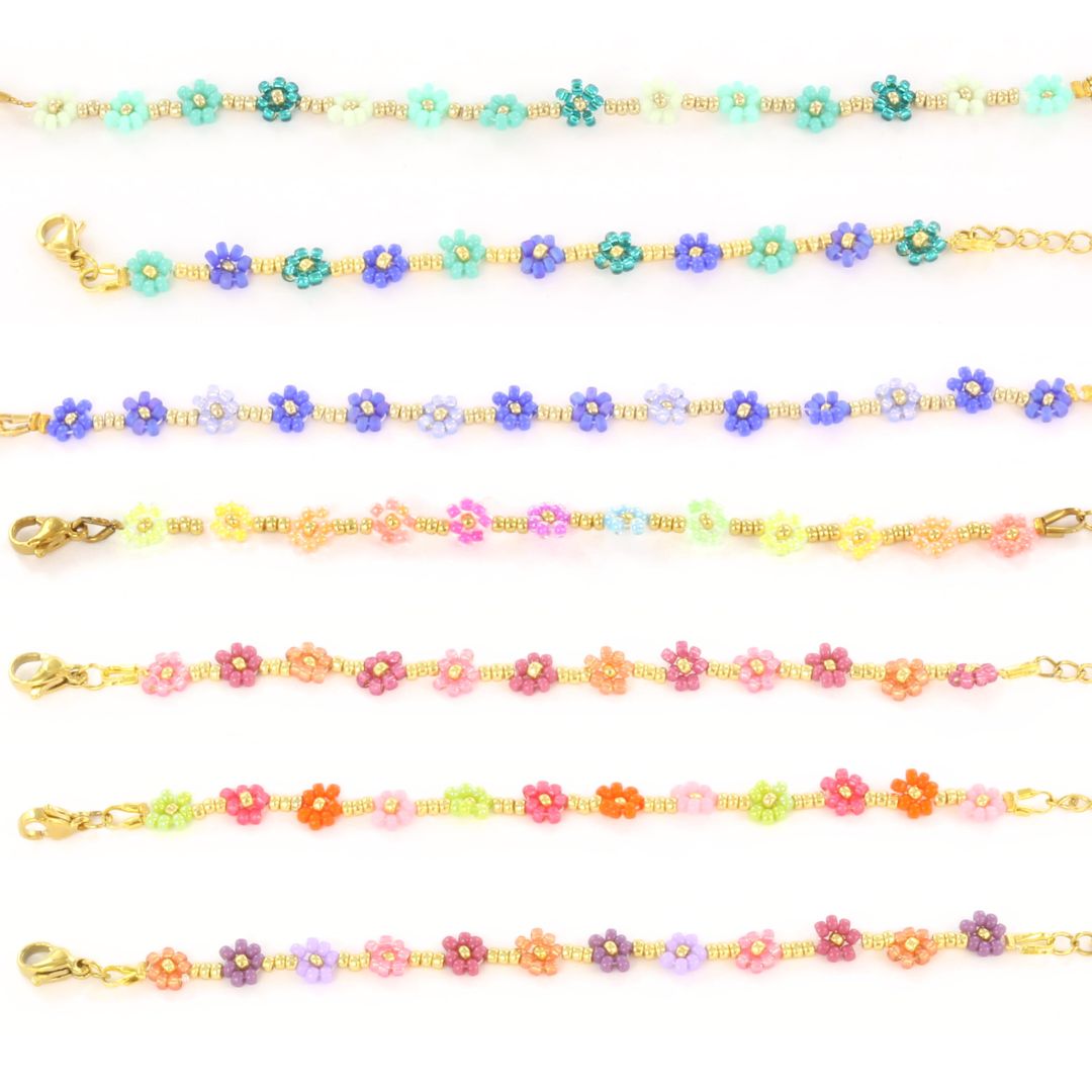 – Kraal 8 in kleur 1. (Deze kraal wordt het hart van de bloem. Leuke tip: je zou hiervoor ook een 3e kleur kunnen gebruiken.)