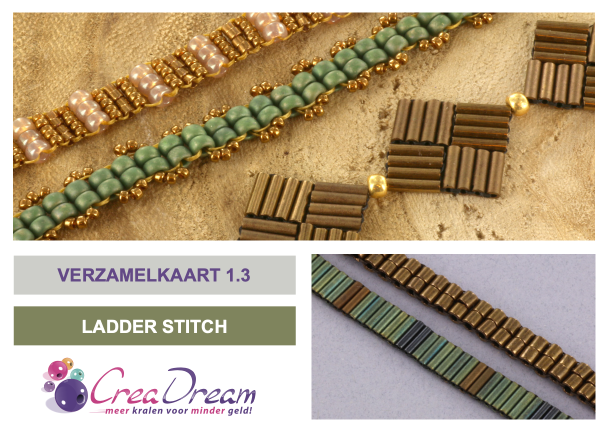 – De ladder stitch is de basis om later eventueel over te gaan op brick stitch of herringbone.