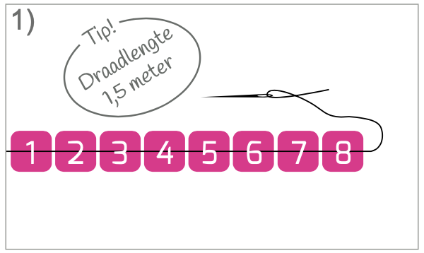 In dit voorbeeld worden het 8 kralen, dus met dat aantal kralen beginnen we.