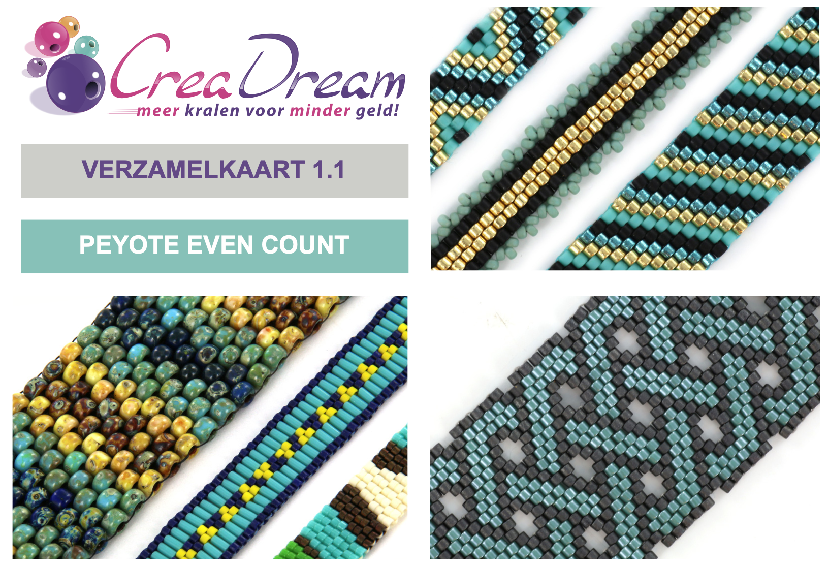 Met de peyote even count kan je leuke armbandjes maken met verschillende patronen.