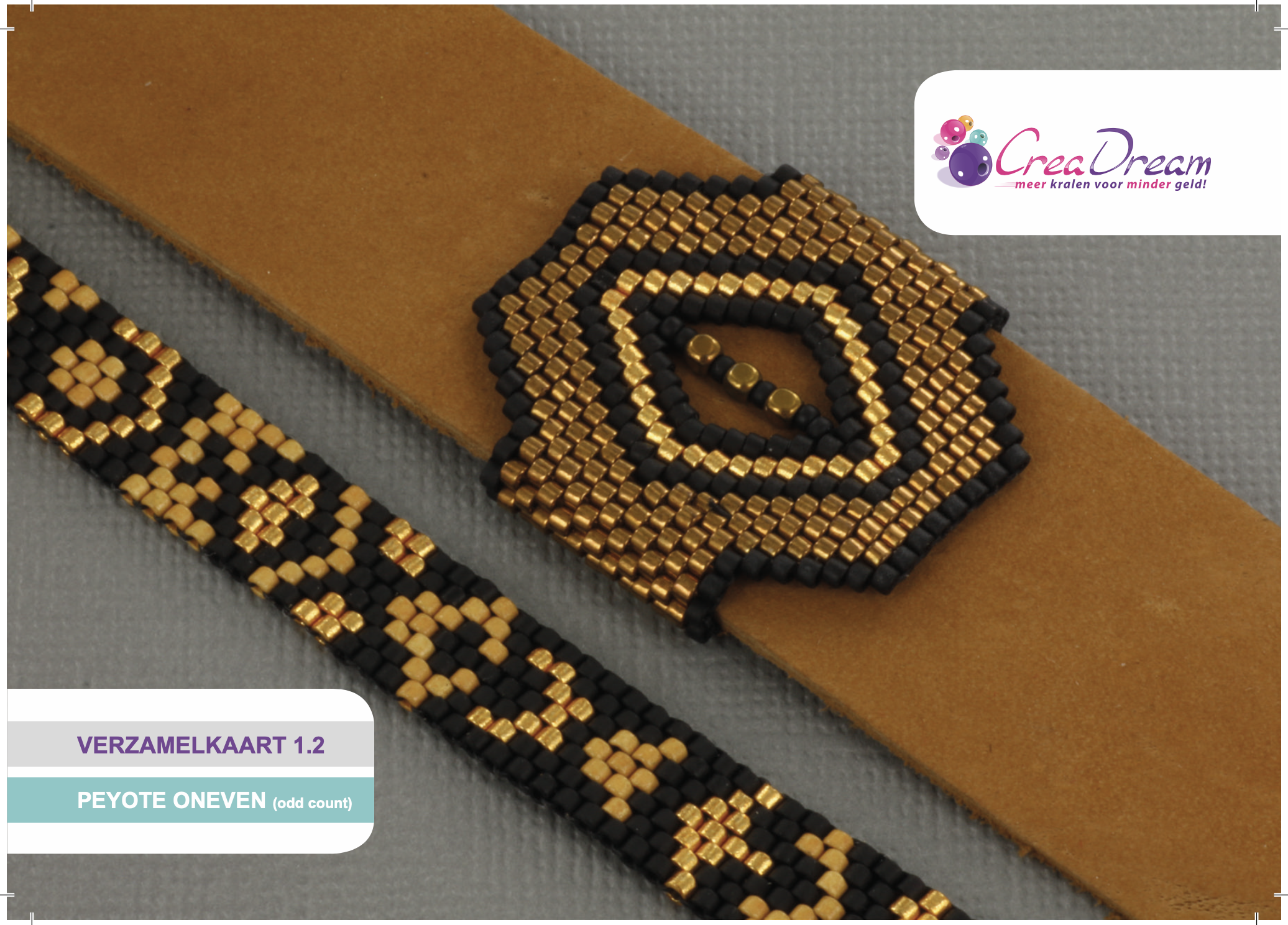 Peyote oneven count (odd count) lijkt heel erg op peyote even count. Het verschil is dat je bij peyote oneven count een oneven aantal rijen kralen maakt, zoals de naam eigenlijk al zegt.