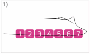 Rijg 7 kralen aan. Dit zijn rij 1 en 2. In de volgende stappen gaan we ervoor zorgen dat het 2 verschillende rijen worden.