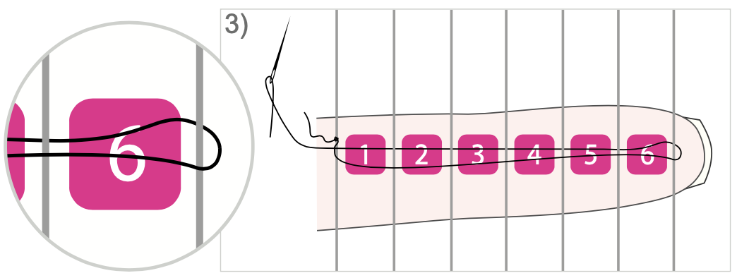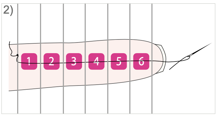 Nu rijg je 6 kralen aan je naald en draad.