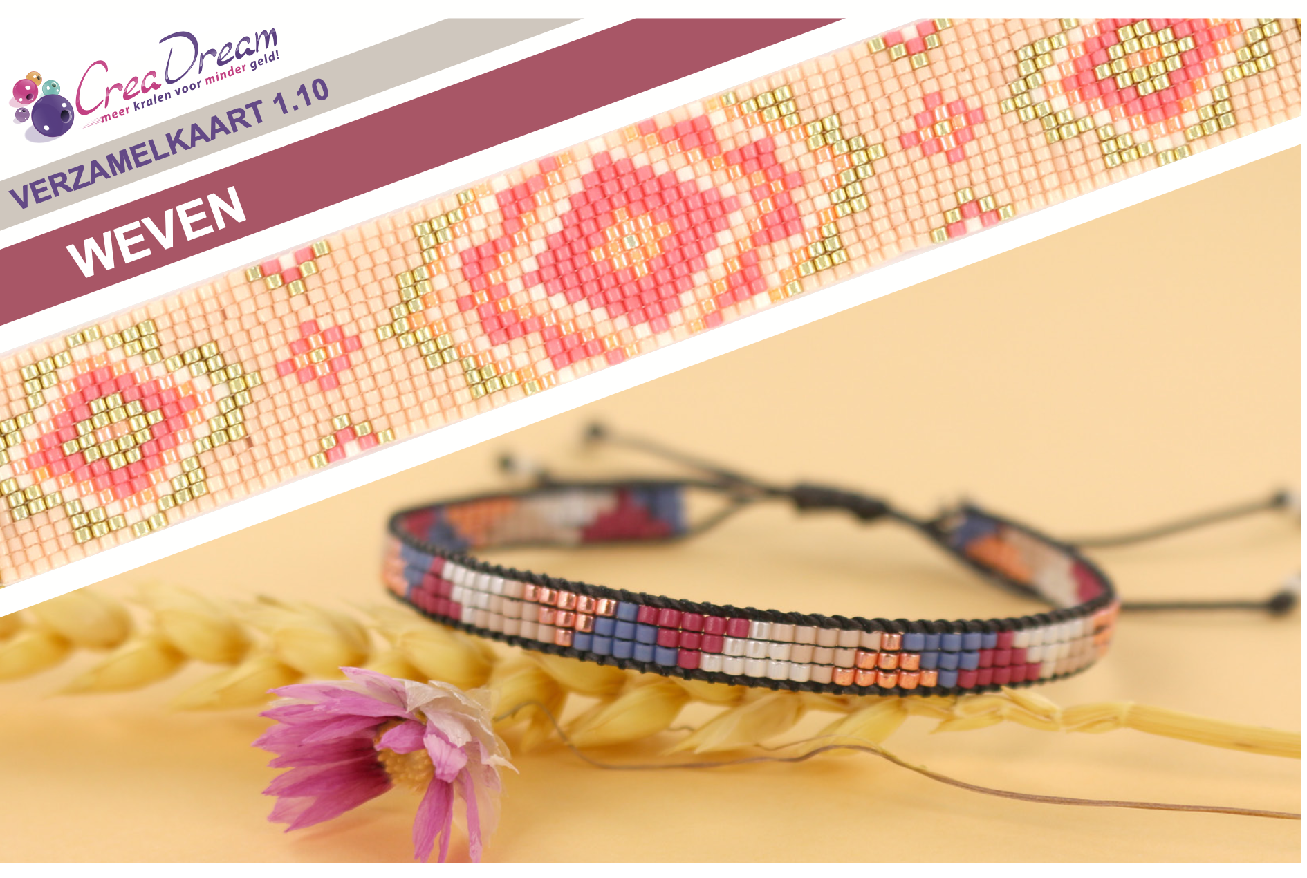 – Je kan ook weven met Rocailles. Denk eraan dat de vorm van de Rocaille kralen anders zijn dan de Delica kralen. Daardoor kan een patroon anders uitvallen, omdat rocaille kralen ronder/breder zijn.