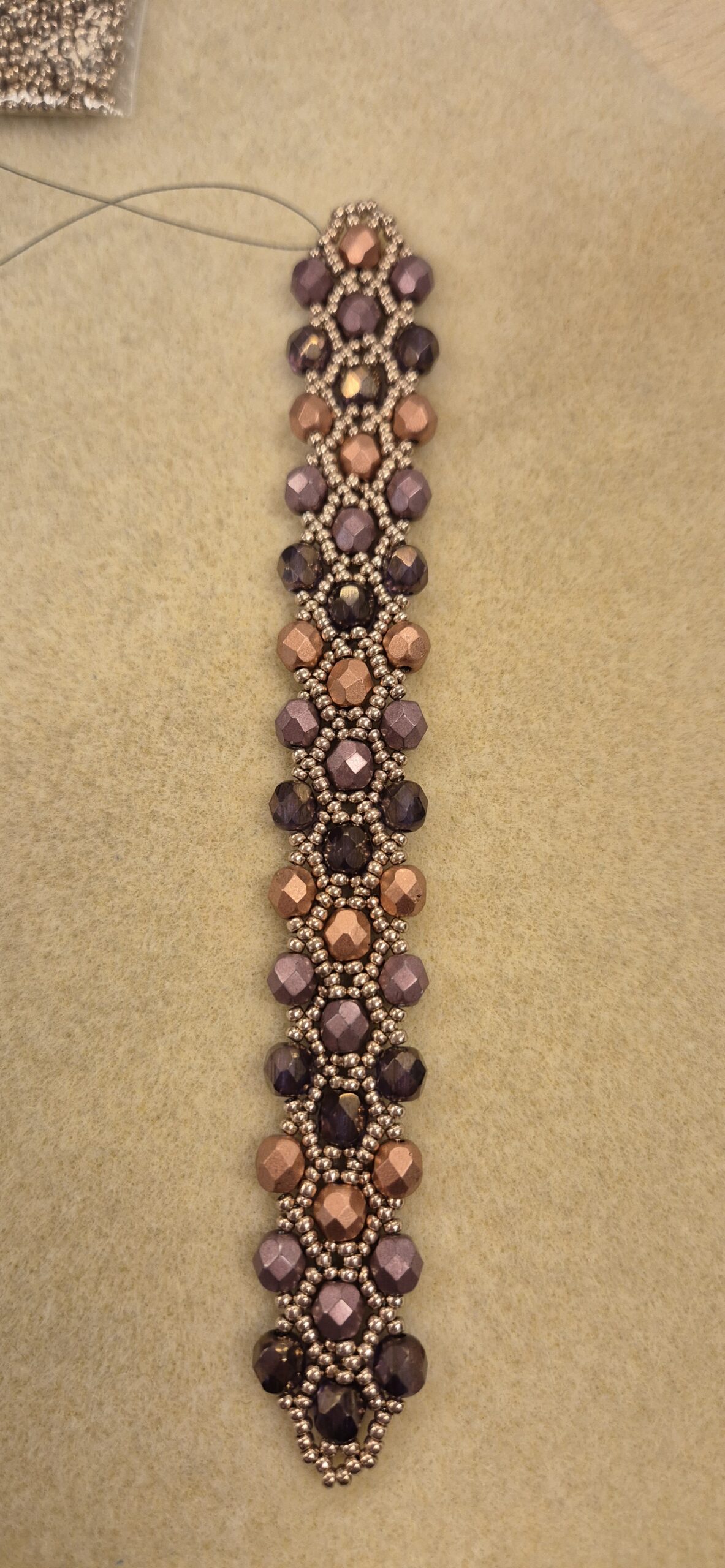 Het is altijd leuk om iets bijzonders te creëren dat er ingewikkeld uitziet, maar dankzij de techniek verrassend eenvoudig is om te maken. Zo heb ik deze armband gemaakt met alleen facetkralen, Miyuki rocailles, FireLine en een slotje.