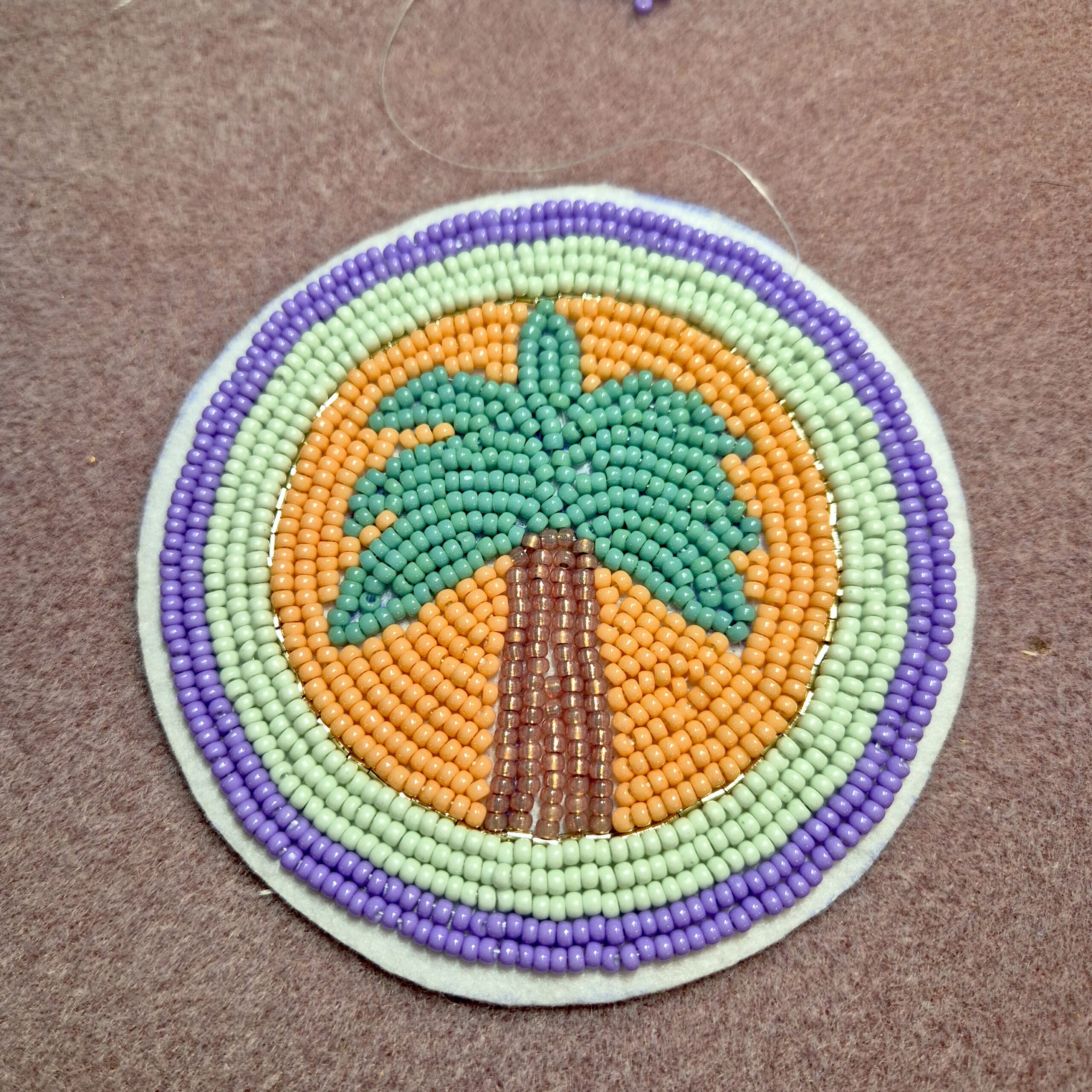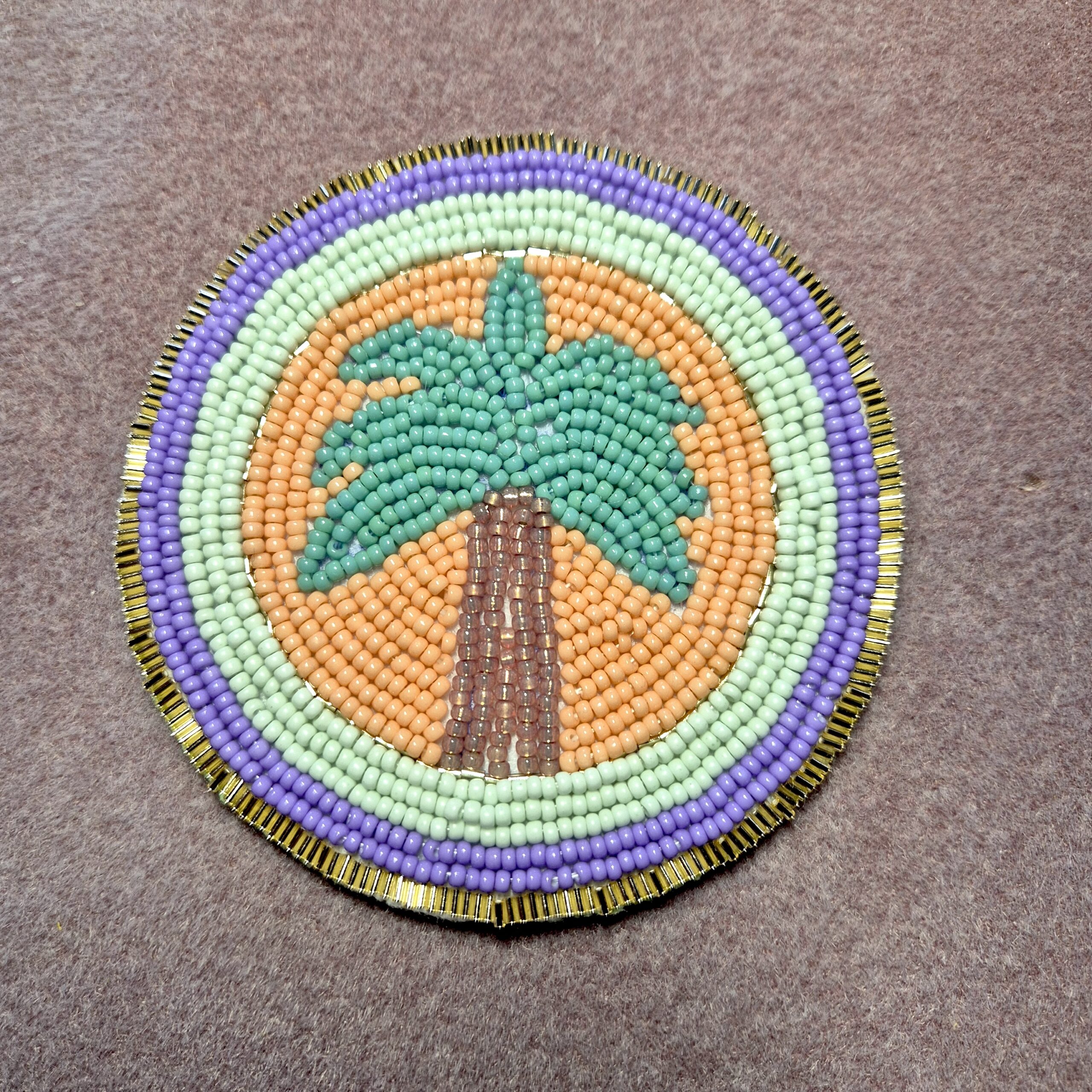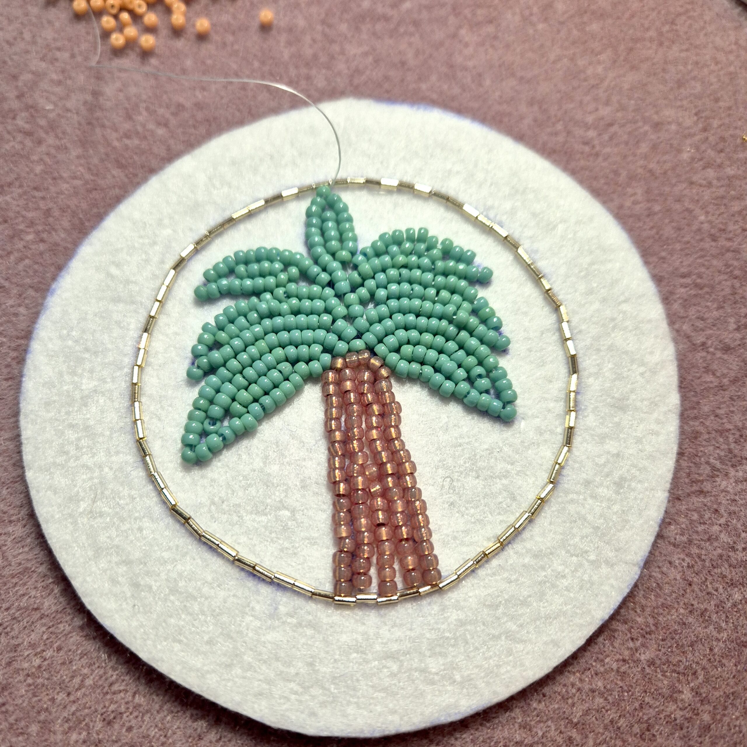Je gaat nu verder met het “inkleuren” van de onderzetter met kralen. Je kunt zelf bepalen in welke volgorde je dit doet en welke kralen je gebruikt. Hieronder heb ik foto’s toegevoegd van mijn stappen, die je als inspiratie kunt gebruiken voor jouw ontwerp.