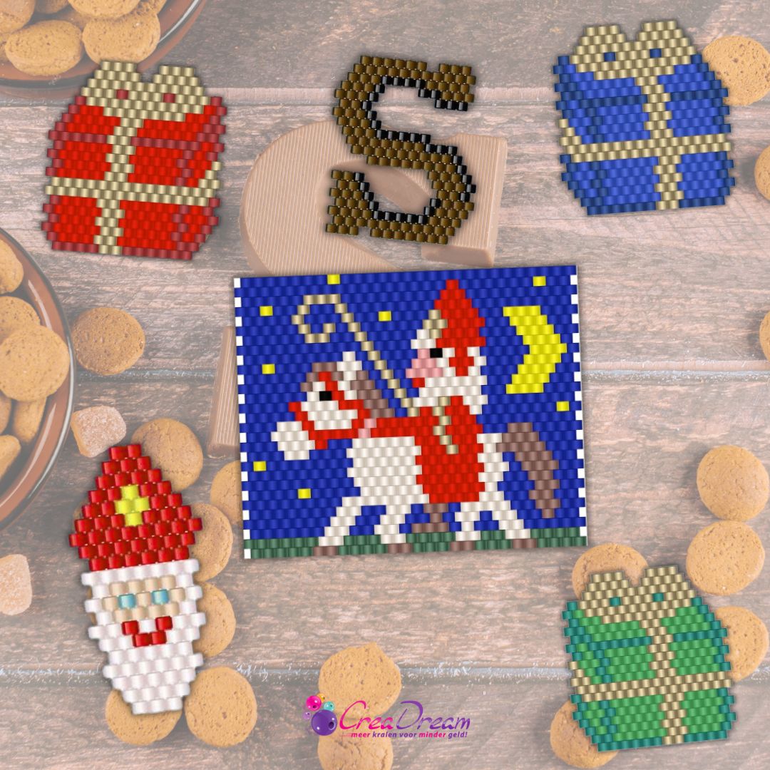 Deze leuke Sinterklaas patronen kun je rijgen met de brick stitch techniek, Miyuki delica kralen en rijggaren.
