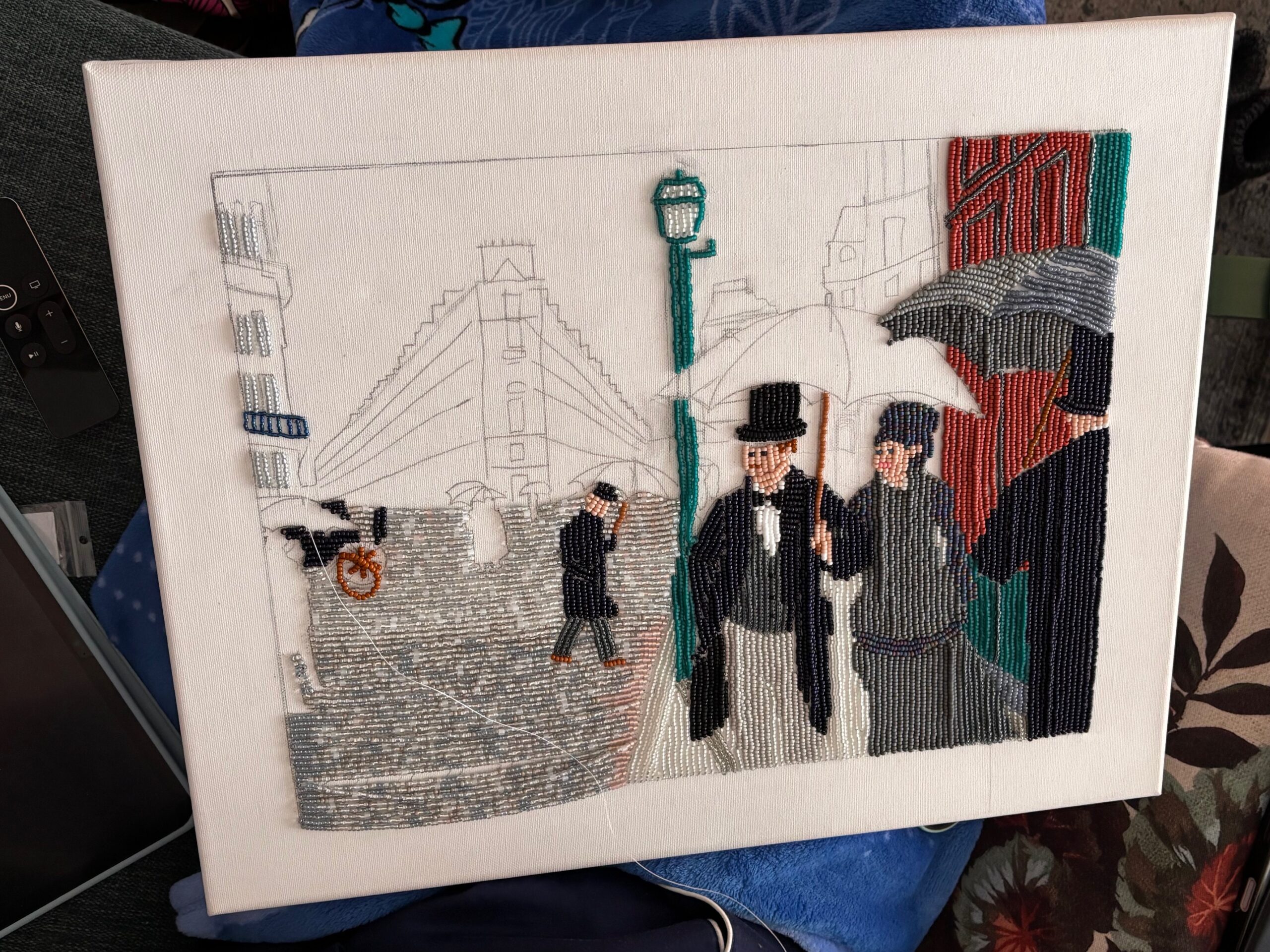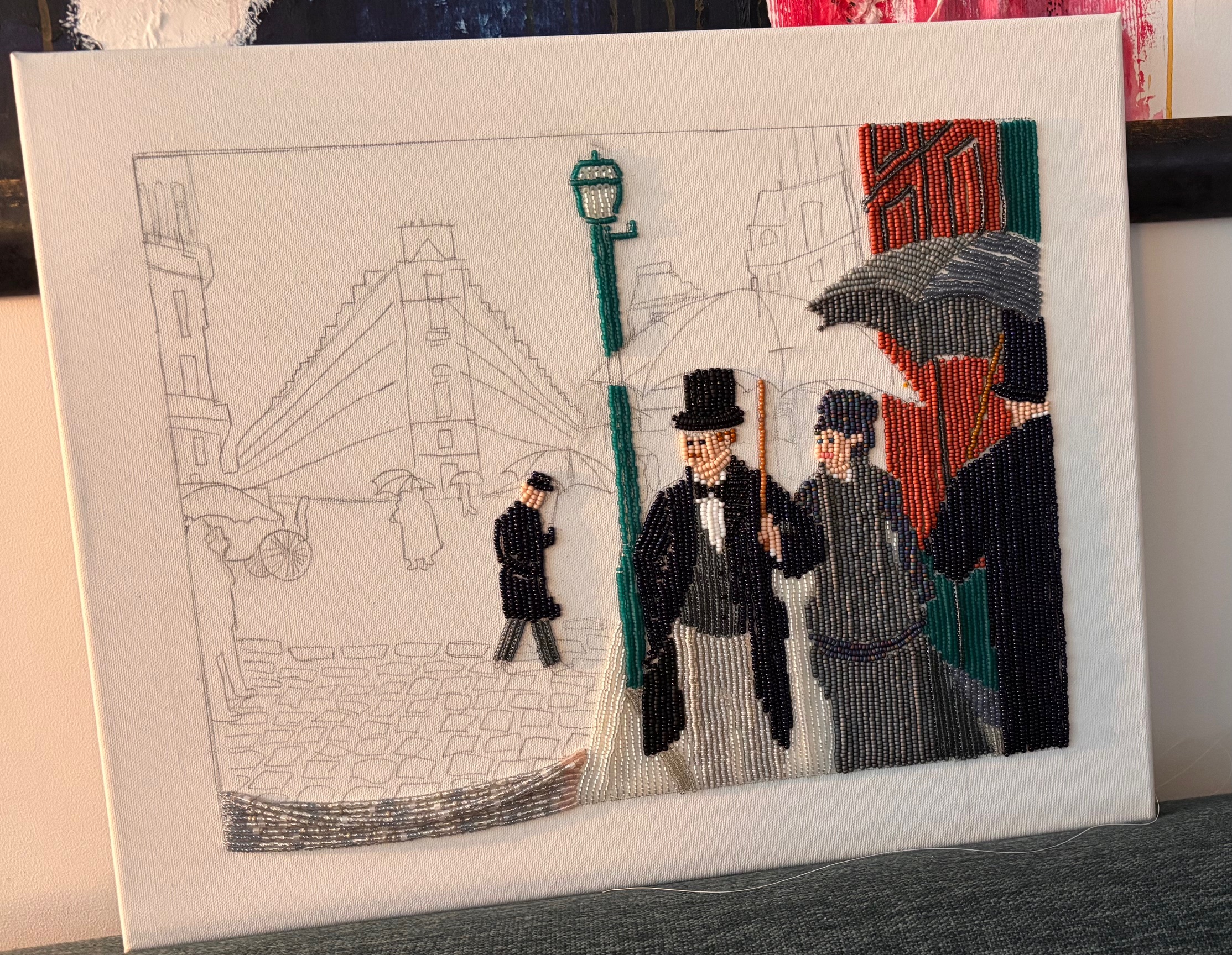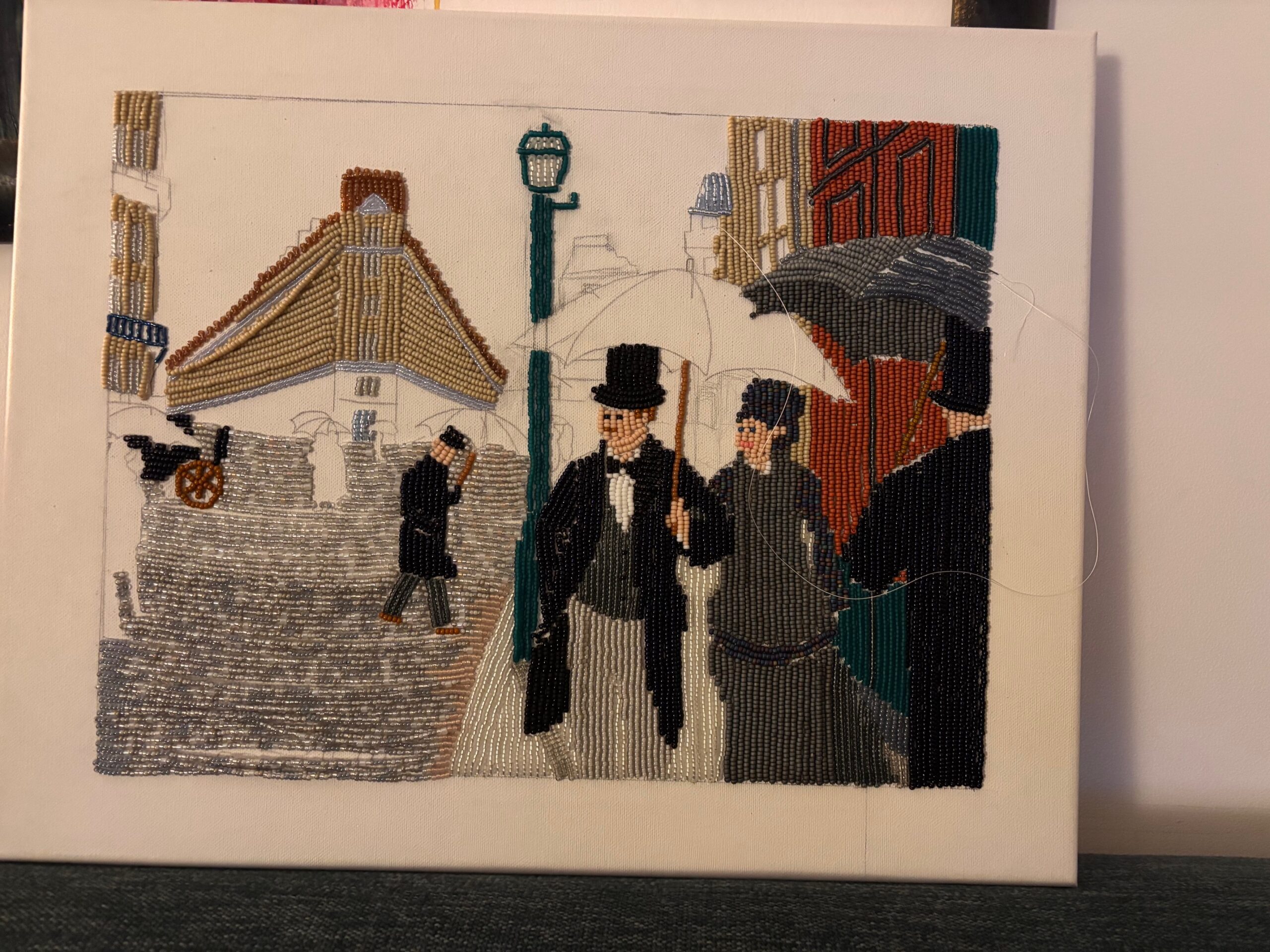 We ontvingen een email van Karin met daarin het prachtig uitgevoerde schoolopdracht “kunst in een ander jasje” van haar dochter Julia (15 jaar). Julia heeft het schilderij Paris Street, Rainy Day als inspiratiebron gebruikt en omgetoverd tot een Miyuki kralen versie. We vinden het bijzonder mooi en creatief bedacht, en we delen dit soort schitterende kunstwerken graag met jullie!